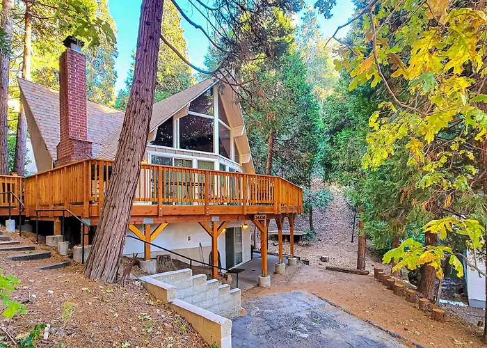 The 2-bedroom Pinecrest Paradise villa is located a 10-minute ride from San Bernardino National Forest and provides hiking, bowling, and fishing for active guests.